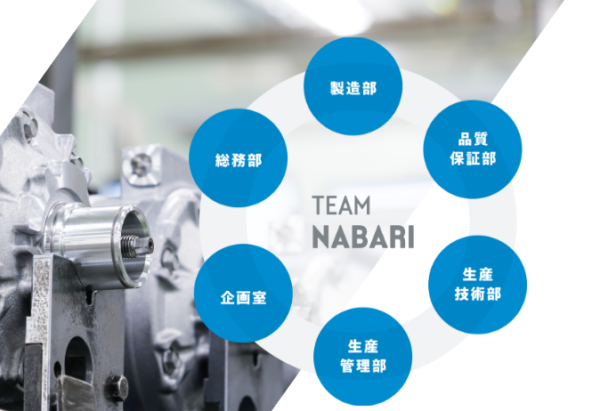 モノづくりの現在そして未来を考えたとき、名張製作所は何ができるか。その答えから見えてくるのは、それぞれの部がひとつのチームとなり、お客さまのニーズに柔軟に応える、さらに自然環境を守ることに注力する生産体制でした。これまでも、これからも、名張製作所はひとつ先のモノづくりと環境保全の両立を図るための取り組みを実践。