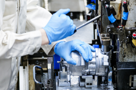 名張製作所が主に製造しているのは、快適な⾞内空間を創造するカーエアコン用コンプレッサ。