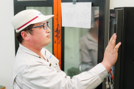 生産ラインで使用する治具、ブロック、軸などの部品製作や修理、電気機器周りの制御や取り付けなどを行っています。生産ラインをハードの面から支える仕事です。