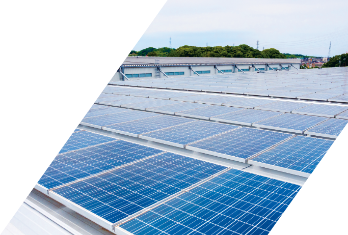 自社工場の敷地内に太陽光パネルを設置し、一般家庭の約300世帯分に相当するエネルギー(1,200kW)を発電しています。また、工場内照明のLED化100%を達成し、地球温暖化をはじめとした環境負荷低減に努めています。