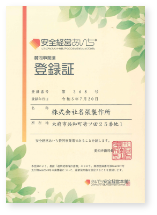 すべての社員が怪我なく、健康に働くためには、どんな小さなリスクも見逃さず対策を積み上げる安全意識が必要です。名張製作所は企業の安全管理を推進する活動「安全経営あいち」の賛同事業所に登録。厚生労働大臣 奨励賞も受賞し、これからも安全第一の現場づくりを推進していきます。